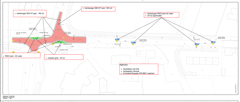 Met als doel de verkeersveiligheid te verhogen heeft de Gemeente Schouwen-Duiveland in 2024 deze kruising aangepast. Na overleg met de werkgroep Verkeer, de aanwonenden en enkele belangengroeperingen is de onderstaande oplossing tot stand gekomen (de snelheidsremmers richting de rotonde zijn niet uitgevoerd).